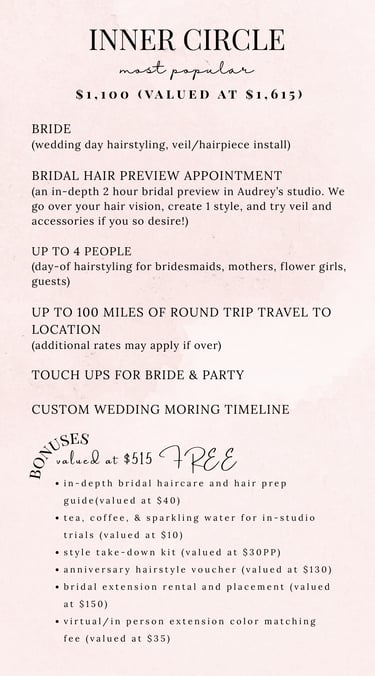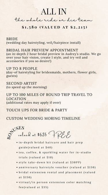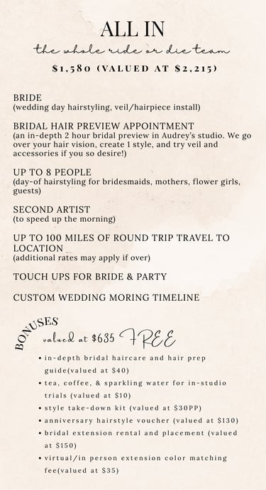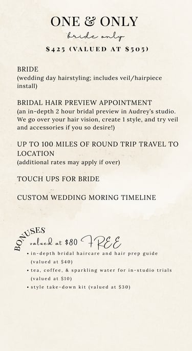 Wedding Hair Packages | THE INVESTMENT